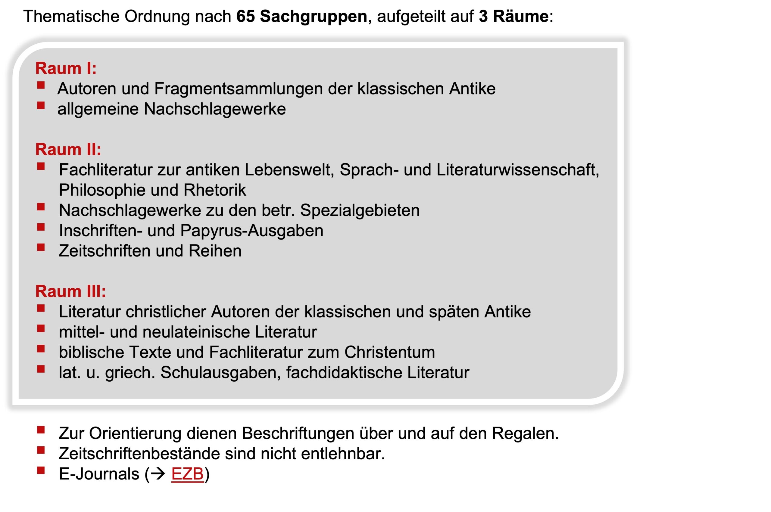 - Raum 3: Klassische Philologie; Zeitschriften aller Bereiche