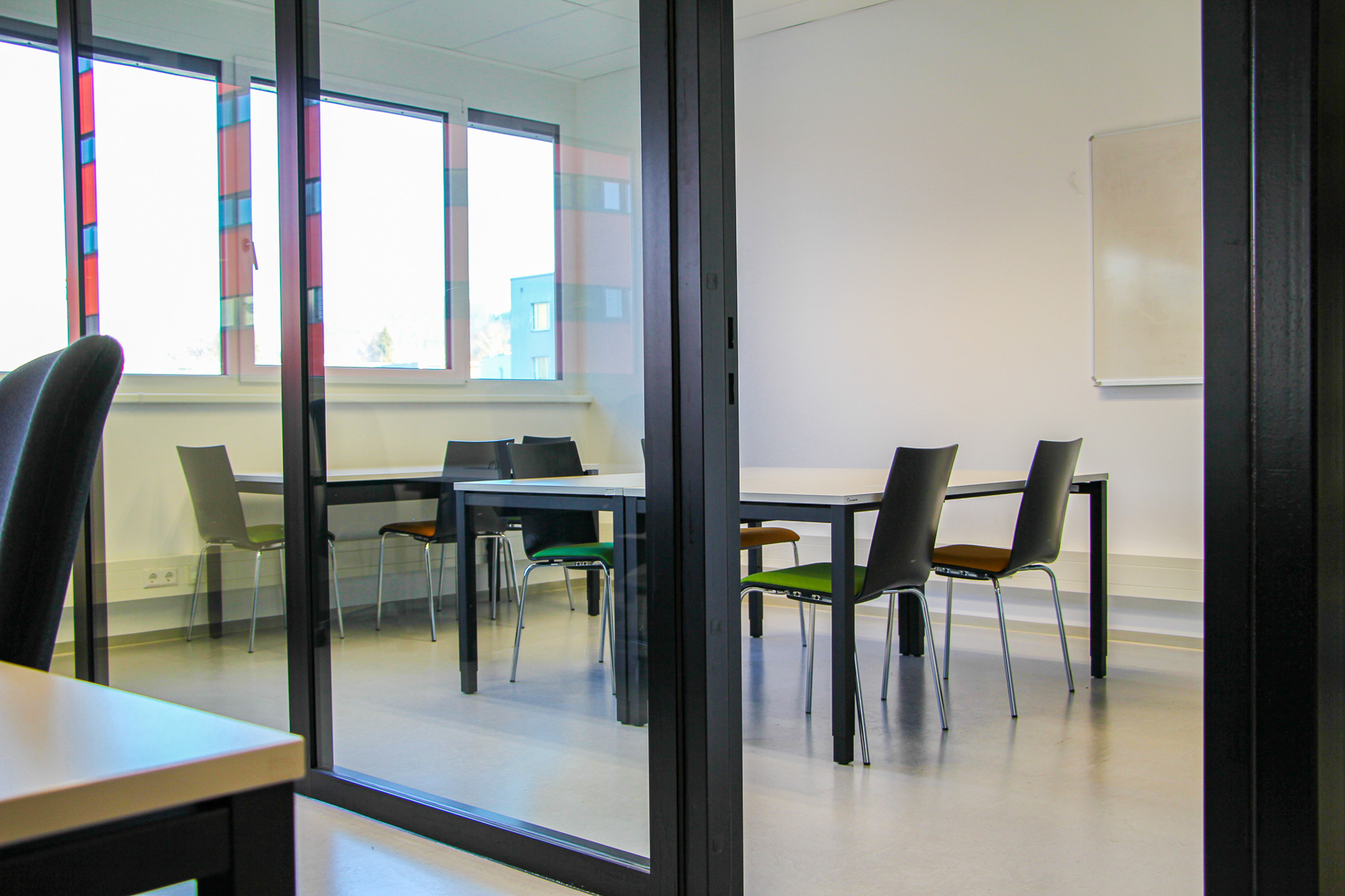 Die Bibliothek verfügt über einen ruhigen Lesesaal, der eine angenehme Atmosphäre für konzentriertes Arbeiten und Lesen bietet. Der Raum ist klimatisiert und sorgt so für ein komfortables Lernumfeld, auch an heißen Sommertagen. Zusätzlich können Nutzer:innen einen Gruppenarbeitsraum online buchen, was die Zusammenarbeit in kleinen Teams erleichtert und eine flexible Nutzung der Bibliothek ermöglicht.