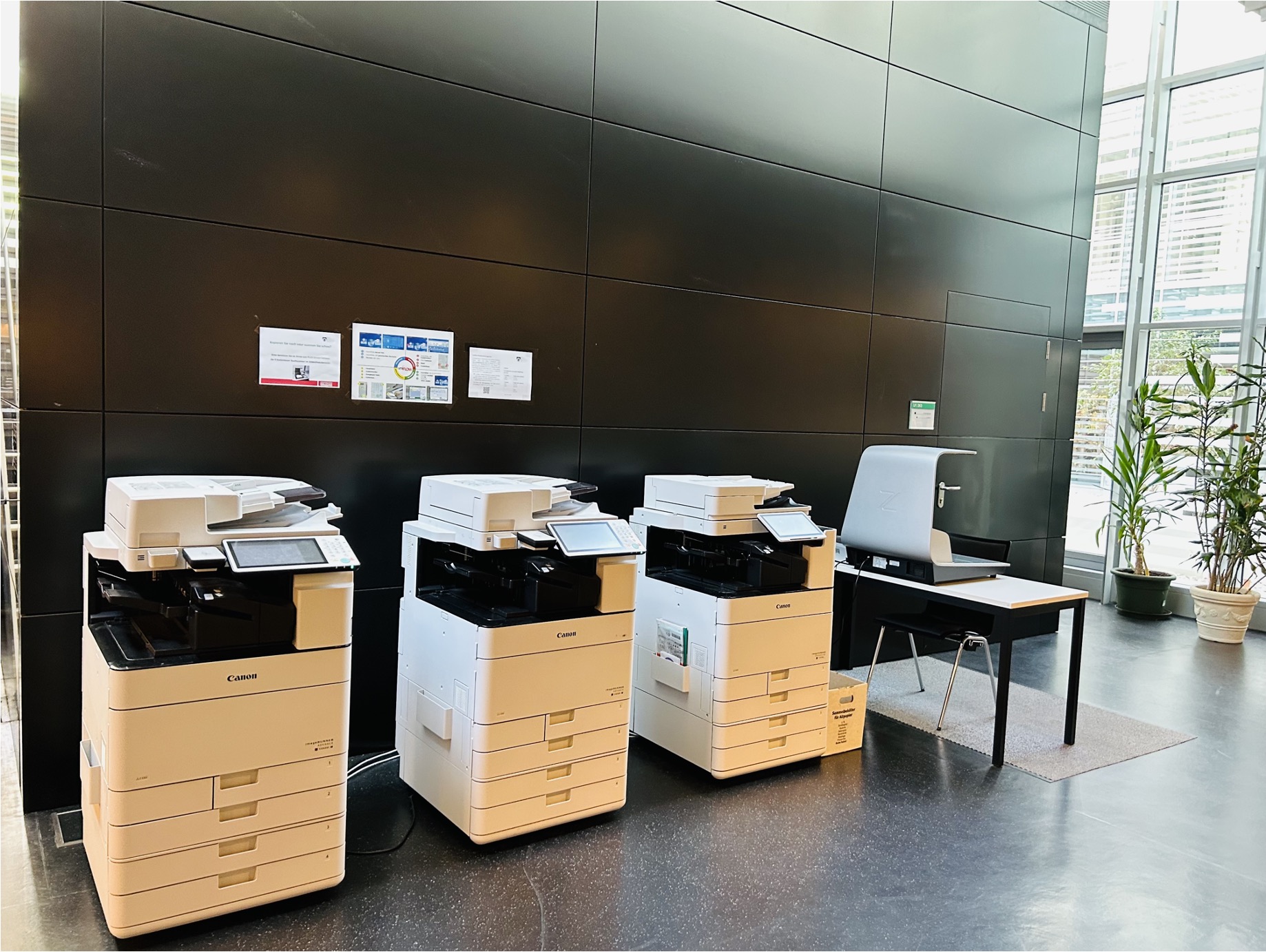 – Zum Aufladen des Kopierguthabens auf dem Studierendenausweis steht im 2. Stock des Gebäudes ein Moneyloader zur Verfügung.
