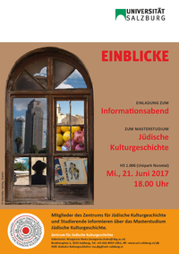 Herzliche Einladung zum Informationsabend zum Masterstudium Jüdische Kulturgeschichte Mi., 21. Juni 2017, 18.00 Uhr s. t., HS 1.006 (Unipark Non