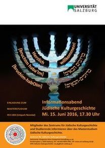 Herzliche Einladung zur Info-Veranstaltung zum Masterstudium Jüdische Kulturgeschichte Mi., 15. Juni 2016, 17.30 Uhr s. t., HS E.003 (Unipark Nonntal)