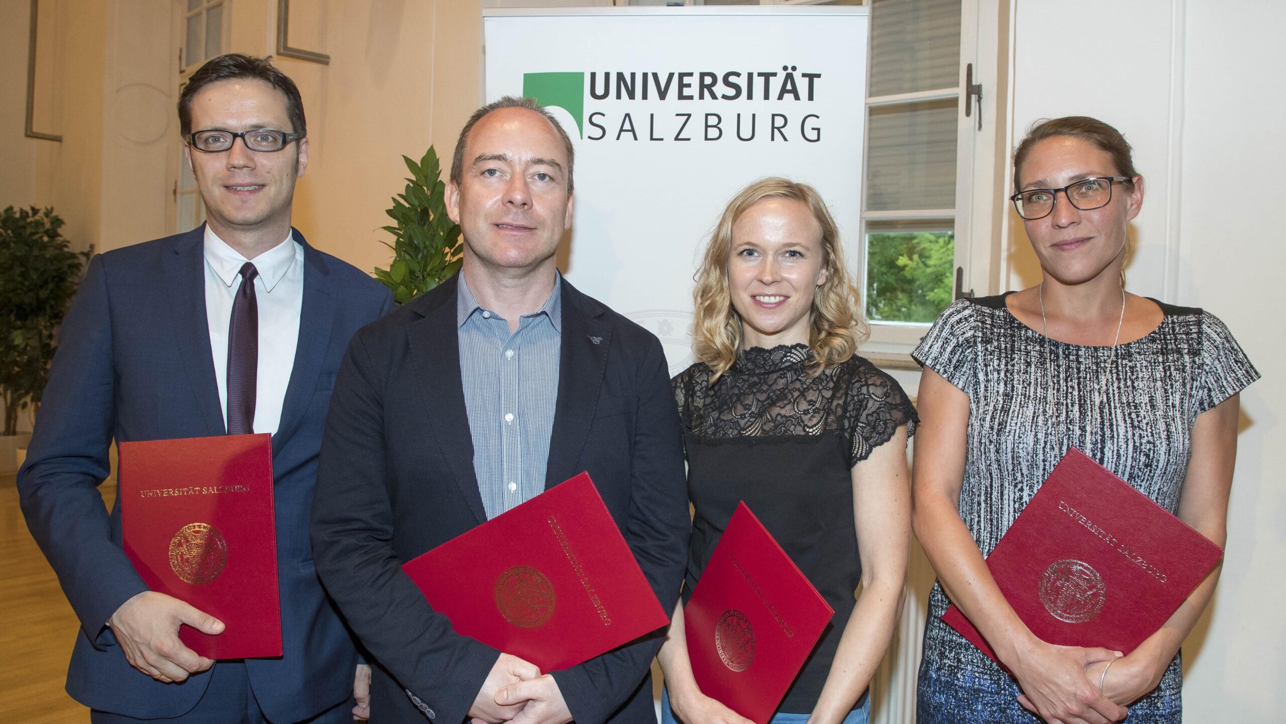 Foto v.l.n.r.: Dr. Martin Dürnberger, Professor Erik Schleef, Pascale Anna Lötscher, MA und Mag. Alice Krenn | Foto: © Kolarik